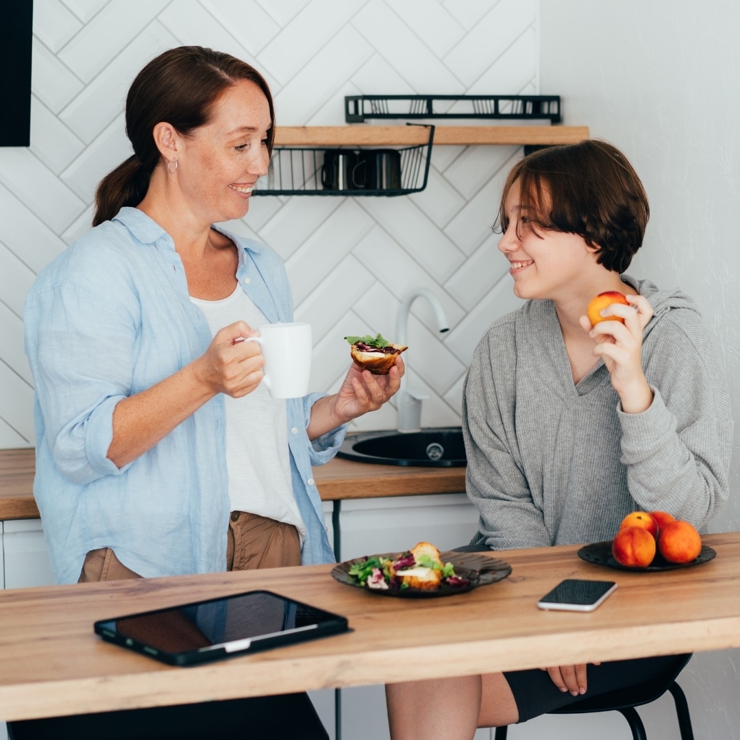 ● Limit screens at meals: Encourages mindfulness and connection.